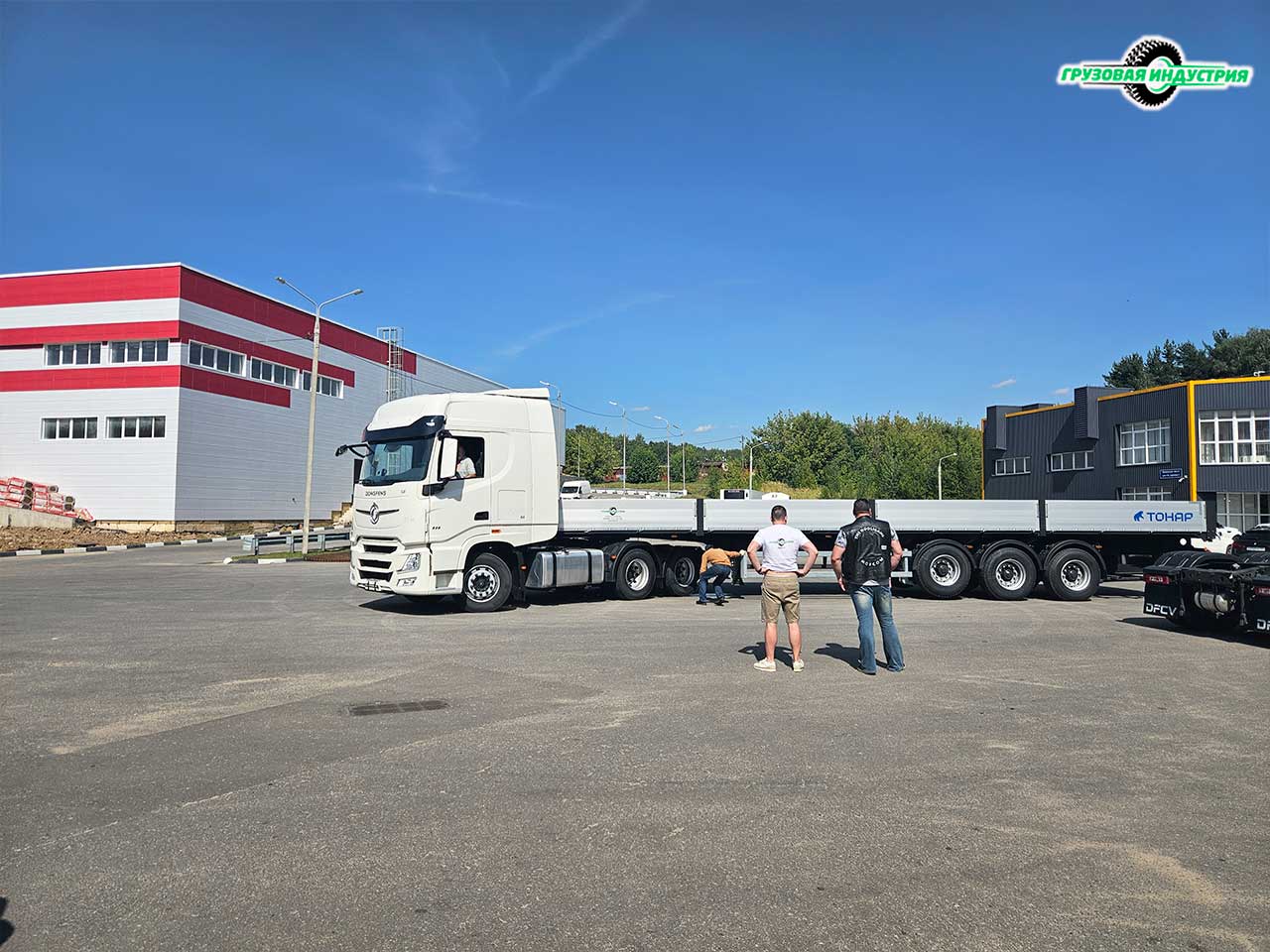 Отгрузка 2-х сцепок тягачи Dongfeng GX 4x2 и 2-х полуприцепов бортовая платформа Тонар В3-13К в г. Москва.